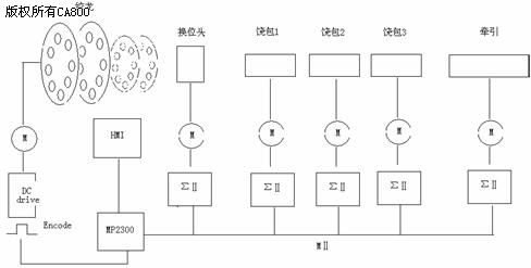 通過(guò)上面兩張不同的系統(tǒng)構(gòu)成圖可以看出,電子軸技術(shù)使得生產(chǎn)線不同位置的機(jī)械可以受到單獨(dú)電機(jī)的控制,這樣這些機(jī)械之間的各種復(fù)雜運(yùn)動(dòng)關(guān)系也就在控制系統(tǒng)中得以更好的實(shí)現(xiàn)。