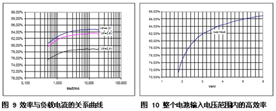 電流感應(yīng)電壓被降至250mV,且過壓保護功能被集成到一個采用小型3mm×3mmQFN封裝的器件中。其效率曲線如圖9和圖10所示。