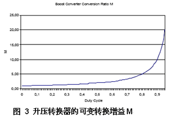 該升壓轉(zhuǎn)換器占空比D可在0%和實際的85%左右之間發(fā)生變化,如圖3所示。