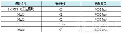 按照表1分別對網絡上的節(jié)點進行設置。使用DeviceNet網絡配置工具配置網絡。