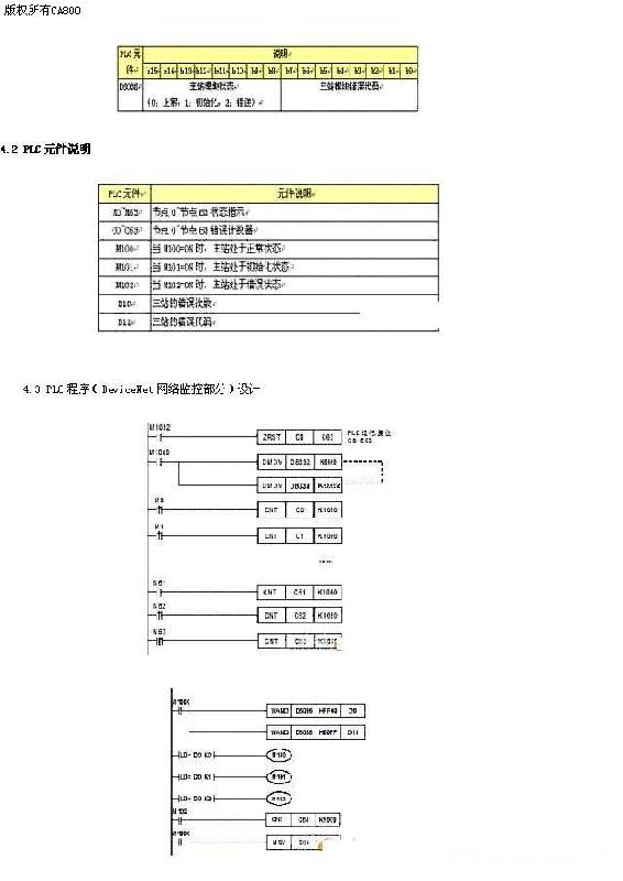 2.2 總控制器結構 總控制器主要由臺達觸摸屏、PLC以及DVPDNET主站模塊構成??偪刂破魍ㄟ^臺達的DeviceNet總線與現(xiàn)場控制器通訊,進行數(shù)據(jù)交換。觸摸屏通過RS485總線以MODBUS協(xié)議與總控制器通訊,監(jiān)視各臺AHU的運行狀態(tài)?,F(xiàn)場控制器的溫度與CO2濃度可以通過總控制器的觸摸屏來設定,設定好的數(shù)據(jù)通過DeviceNet通訊分發(fā)給各現(xiàn)場控制器。通過臺達DVPDNET主站模塊對整個網絡進行管理,并通過人機界面顯示各網絡節(jié)點的狀態(tài)。當網絡上的節(jié)點發(fā)生異常時,相應的指示燈點亮。實時顯示主站模塊的狀態(tài),當主站模塊發(fā)生錯誤時,顯示主站模塊的錯誤代碼。 2.3 現(xiàn)場控制器 現(xiàn)場控制器主要由臺達MODBUS/DeviceNet轉換模塊DNA02、PLC、變頻器、接觸器等部件構成?,F(xiàn)場控制器接受總控制器的溫度、CO2濃度設定指令?,F(xiàn)場控制器之間還可以通過總控制器實現(xiàn)數(shù)據(jù)共享,將采集到的溫度、CO2濃度等信號傳送給與該區(qū)域相關的其他現(xiàn)場控制器?,F(xiàn)場控制器控制AHU、PAH空調機的風機轉速、冷(熱)水閥門開度和新風閥開度來調節(jié)室內溫度和CO2濃度。 2.4 AHU的控制流程 空調機組AHU操作箱可以選擇自動控制或手動控制。自動控制時,現(xiàn)場溫度及CO2濃度由臺達PLC智能控制在允許的設定范圍內;當操作箱出現(xiàn)故障時(如傳感器損壞、出現(xiàn)通訊故障等),可以選擇將變頻器以固定頻率運行或者工頻運行,以便檢修。 2.5 對于CO2的濃度和人流量的處理 在賣場中,根據(jù)空間區(qū)域布置CO2傳感器位置,主要在人員集中密集處采集CO2濃度值。CO2傳感器就近接線于現(xiàn)場控制箱的PLC,此信號經過集中控制器發(fā)送給本區(qū)域相關的空氣處理機組的控制器,然后由各臺AHU通過調整新風閥門開度來引進新風量,調節(jié)室內CO2濃度。新風閥門的開度的大小是通過CO2濃度、室外溫度的目標值依據(jù)其權重的大小來進行PID控制的。 2.6 火警連鎖 系統(tǒng)與安防系統(tǒng)連動,當發(fā)生火警時,總控制器上人機出現(xiàn)報警畫面,同時空調機停止工作,水閥、風閥關閉,排煙系統(tǒng)啟動,排出煙霧。本系統(tǒng)提供一個干接點與安防系統(tǒng)連動。 3 DeviceNet網絡配置設計