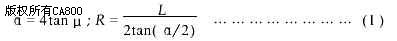在AutoCAD環(huán)境中,與圖形相關(guān)的幾何信息包含在實(shí)體段中,實(shí)體段由若干個(gè)組構(gòu)成,組包含組代碼(實(shí)體類型)和組值(實(shí)體的大小、長(zhǎng)度等)。為了保證圖形準(zhǔn)確,避免實(shí)體出現(xiàn)間隙或連接錯(cuò)位、順序顛倒等現(xiàn)象,在AutoCAD中繪制圖形后,使用PE命令將圖形變成一條多義線(POLYLINE)。AutoCADR14以上版本的多義線實(shí)體信息如下:組碼(0 “LWPOLYLINE”)為多義線標(biāo)識(shí);組碼(10160 159100 406)為端點(diǎn)坐標(biāo);組碼(42 0 414214)為凸度,如果凸度等于零,則為直線;如果凸度大于零,則為圓弧。圖4所示圓弧中,圓心角α、半徑R、凸度μ之間的換算關(guān)系如式(1):
