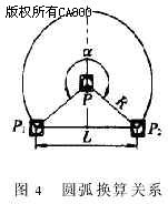 由于P1、P2、P點(diǎn)的坐標(biāo)已知,起始角α1、終止角α2可由式(2)求出。