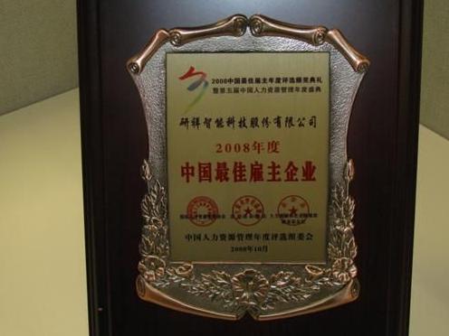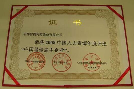 2008年10月25日,第五屆中國人力資源管理年度盛典暨2008中國人力資源年度評選頒獎典禮在北京大學百年大講堂隆重舉行。研祥榮獲“中國最佳雇主企業(yè)獎”。