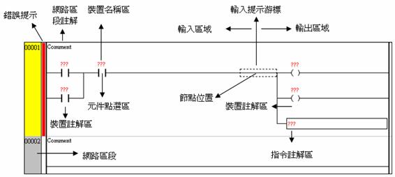 為方便切換階梯窗口,只要點選系統(tǒng)信息列中的樹枝狀對應的程序編號,自動切換對應的程序編輯窗口,在PMSoft編輯環(huán)境中同時只能有一個階梯圖窗口,這是為了在龐大復雜程序中找尋程序方便,同時將主程序、運動子程序、一般子程序這三種程序模塊化處理,O100主程序只有一個編輯窗口,Oxn運動程序有100個編輯窗口,Pm子程序有256個編輯窗口,總共有357個窗口,每個窗口未編輯都有10 network。程序編輯由網(wǎng)絡區(qū)段組成,每個網(wǎng)絡區(qū)段是由輸入與輸出編輯區(qū)域所組成,在編輯過程中,自動產(chǎn)生邏輯結(jié)構(gòu)正確的階梯圖,使用者無須再做額外補線的動作,網(wǎng)絡區(qū)段編輯并具有錯誤提示功能。