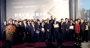 西門子2008全集成自動(dòng)化區(qū)域推廣會(huì)議(TIA Promoter Conference 2008)于2008年10月9日至11日在北京稻香湖景酒店順利舉行。本次會(huì)議以“群英匯聚,榮耀共享”為標(biāo)語,借此機(jī)會(huì)總結(jié)了07/08財(cái)年西門子全集成自動(dòng)化的業(yè)績,并對(duì)各個(gè)區(qū)域推廣經(jīng)理所作出的杰出貢獻(xiàn)予以肯定。