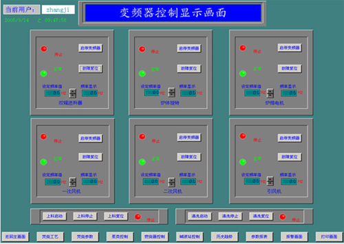 現(xiàn)場(chǎng)采集和顯示控制設(shè)備,基本選用國(guó)產(chǎn)元件,一般選用的測(cè)量1200度以上的溫度S分度熱電偶,1200度以下500度以上用S分度熱電偶,500度以下用PT100熱電阻測(cè)量,直接與相應(yīng)的PLC模塊連接,不需要任何的變送器元件;壓力選用壓力差壓變送器把壓力信號(hào)變成4-20mA的標(biāo)準(zhǔn)信號(hào)送到AI模塊;電機(jī)的轉(zhuǎn)速通過(guò)變頻器調(diào)節(jié),頻率信號(hào)通過(guò)AI 模塊輸入,頻率的設(shè)定通過(guò)AO 模塊輸出4-20mA的標(biāo)準(zhǔn)信號(hào)進(jìn)行控制,啟??刂仆ㄟ^(guò)DO模塊控制,設(shè)備狀態(tài)信號(hào)通過(guò)DI模塊輸入。