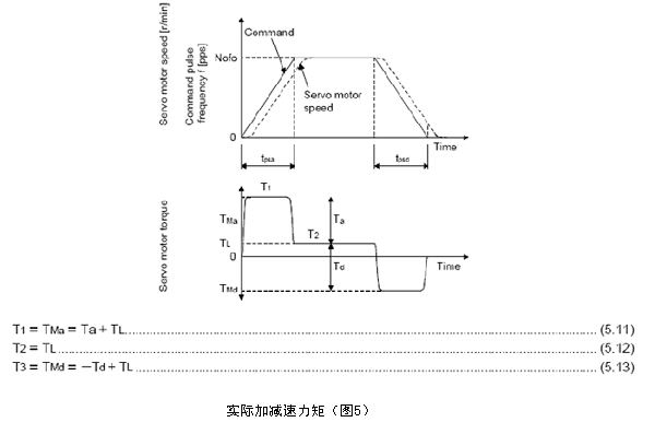 圖3中的馬達速度No對應(yīng)圖1中的速度指令(Command speed ),加減速時間tpsa和tpsd對應(yīng)圖4中的實際加減速時間。已知了負載慣量和電機慣量,就可以計算出加減速力矩Ta和Tb。由圖3所示。