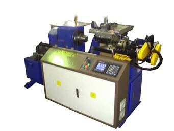 旋壓成型加工的工藝設(shè)備是旋壓機(jī)。利用旋壓加工設(shè)備將厚壁金屬筒形件,包括難熔金屬、有色金屬、不銹鋼等經(jīng)強(qiáng)力旋壓成各種尺寸的薄壁管材或異形旋壓加工成異形空心回轉(zhuǎn)件的加工。旋壓成形是將毛坯夾緊在模芯上,由旋壓機(jī)帶動(dòng)模芯和毛坯一起以高速旋轉(zhuǎn)。同時(shí)利用滾輪的壓力和進(jìn)給運(yùn)動(dòng),使毛坯產(chǎn)生局部變形,最后獲得軸對(duì)稱零件。旋壓模具簡(jiǎn)單,且為局部變形,可用功率和噸位較小的設(shè)備加工大型零件,多用于批量小而形狀復(fù)雜的零件。旋壓機(jī)原理是在工件高速旋轉(zhuǎn)時(shí),通過強(qiáng)大的外力對(duì)工件按一定路徑進(jìn)行擠壓,通過滾輪對(duì)材料進(jìn)行反復(fù)趕壓,使其由點(diǎn)到線,由線到面最終導(dǎo)致工件熱變形形成需要的外形。根據(jù)需要的擠壓力不同,小型旋壓機(jī)通過伺服電機(jī)帶動(dòng)螺桿產(chǎn)生壓力即可,一些大型強(qiáng)力旋壓機(jī)則需要通過液壓的方式來擠壓。