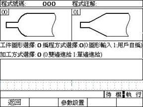 加工方式選擇:輸入相應(yīng)的數(shù)字選擇單邊或雙邊進(jìn)刀的加工路徑,程式號(hào)碼會(huì)自動(dòng)切換到相應(yīng)程式。