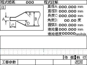 參數(shù)設(shè)置:按下進(jìn)入?yún)?shù)設(shè)置畫面。工件圖形選擇不同進(jìn)入不同的參數(shù)設(shè)置畫面。