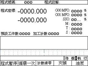 從面板按鍵上選擇自動(dòng)模式進(jìn)入自動(dòng)畫面。自動(dòng)畫面下按上下翻頁鍵可以調(diào)整G01進(jìn)給倍率。