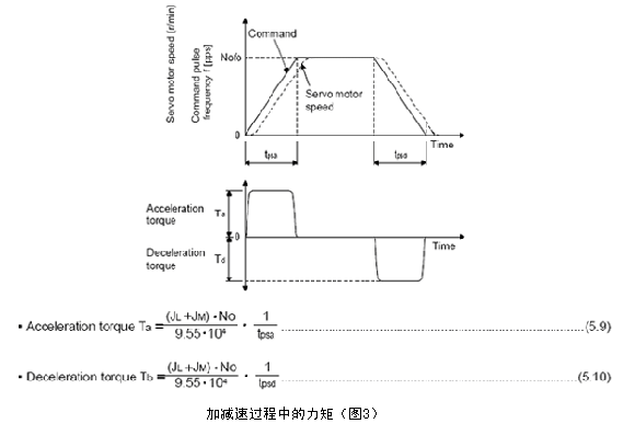 圖3中的馬達(dá)速度No對應(yīng)圖1中的速度指令(Command speed ),加減速時間tpsa和tpsd對應(yīng)圖4中的實際加減速時間。已知了負(fù)載慣量和電機慣量,就可以計算出加減速力矩Ta和Tb。由圖3所示。