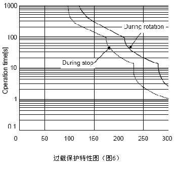 以MR-J2S-10A~MR-J2S-100A過載保護(hù)特性圖為例進(jìn)行說明,當(dāng)伺服電機輸出力矩為200%額定力矩時,如上圖所以電機運行大約100s后伺服放大器內(nèi)的IPM就會因為過熱而出現(xiàn)過載報警。