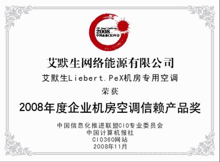 艾默生網(wǎng)絡(luò)能源獲“2008年度企業(yè)機(jī)房空調(diào)信賴產(chǎn)品獎”