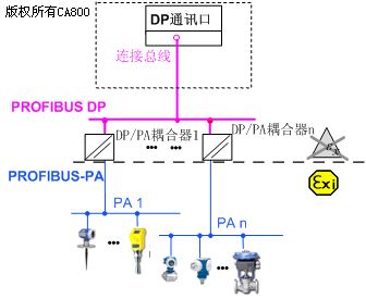 DP/PA耦合器/鏈接器實(shí)現(xiàn)PROFIBUS-DP到本安現(xiàn)場(chǎng)總線PROFIBUS-PA的轉(zhuǎn)換和連接。PA本安現(xiàn)場(chǎng)總線還可以實(shí)現(xiàn)對(duì)本安現(xiàn)場(chǎng)總線儀表的饋電。