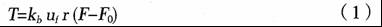 式中,T表示產(chǎn)生的制動力矩;kb為制動效能因數(shù),是車輛速度的函數(shù),這里近似看為常數(shù);uf是摩擦塊與制動盤的平均摩擦系數(shù);r為制動盤摩擦半徑,F是隨時間線性變化,對(1)式求導(dǎo)得: