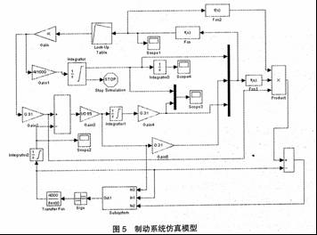 MATLABSIMULINK環(huán)境下,建立了制動系統(tǒng)仿真模型見圖5