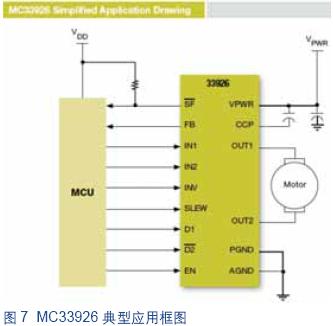 MC33926 具有輸出電流限流功能以保護(hù)電機(jī),輸出對(duì)電源或?qū)Φ囟搪繁Wo(hù),帶滯回區(qū)的過(guò)溫關(guān)斷保護(hù)等功能。同時(shí)帶有輸出電流反饋以實(shí)現(xiàn)閉環(huán)電機(jī)調(diào)速或扭矩控制。