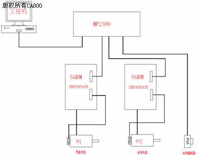 一、YASKAWA運(yùn)動控制器簡介 隨著現(xiàn)代工業(yè)的不斷發(fā)展,對機(jī)器的運(yùn)動控制提出了更高的要求,YASKAWA的運(yùn)動控制器MP2000系列就是在這種情況下應(yīng)運(yùn)而生的。MP2000系列強(qiáng)化了高速處理大容量程序的能力、同步控制多軸的性能、高效率編程的操作性,發(fā)揮這三項(xiàng)強(qiáng)大功能,可使所有的機(jī)器都實(shí)現(xiàn)理想的運(yùn)動控制。 要使復(fù)雜的機(jī)械動作高速化,高速處理的程序和高速化的網(wǎng)絡(luò)是不可或缺的。MP2000系列通過采用了高速CPU,縮短了命令執(zhí)行時(shí)間。并且,由于使用了MECHATROLINK-II(傳送速度10Mbps),實(shí)現(xiàn)了切換速度的多軸高速運(yùn)動。 在需要多軸同步控制的應(yīng)用中,控制器的同步性能極為重要。由于MP2000系列可同步控制多軸,所以它們不僅應(yīng)用廣泛,而且還可大幅度提高機(jī)械精度。 要進(jìn)行高度化的控制,編程和維修作業(yè)必須要高效率。工程工具M(jìn)PE720通過適用于Windows環(huán)境的操作,可編制直觀的梯形程序,使用拖動與下拉、剪切與粘貼功能后,程序編輯也變得非常簡單。另外,MP2000系列還致力于系統(tǒng)所需的設(shè)定和編程管理、描述方法的高效化,縮短了設(shè)計(jì)師建議及維修作業(yè)的時(shí)間。 二、數(shù)控鋼筋彎箍機(jī)系統(tǒng)組成及原理 1)、引言 數(shù)控彎箍機(jī)主要應(yīng)用于建筑行業(yè)材料的加工中。形狀各異的鋼筋箍筋是樓房建筑工地上用量最大的構(gòu)件。長期以來,它都是靠建筑工人手工制成,不僅效率低,而且精確度差,嚴(yán)重制約了工期進(jìn)度和樓體整體建筑質(zhì)量。隨著運(yùn)動控制系統(tǒng)的廣泛應(yīng)用,數(shù)控彎箍機(jī)的設(shè)計(jì)定型。利用這臺設(shè)備,每個班次可以加工7.5噸鋼筋,而且不需占用大面積場地,只需一名工人就可作業(yè),比原來的人工方法提高效率近40倍。 2)、設(shè)備結(jié)構(gòu) 設(shè)備的結(jié)構(gòu):首先介紹整個設(shè)備的生產(chǎn)過程,設(shè)備工作前,所需各種工藝動作的設(shè)置參數(shù)由上位工控機(jī)進(jìn)行輸入和修改。數(shù)控彎箍機(jī)有兩臺電機(jī),彎曲電機(jī)M1和送進(jìn)電機(jī)M2。送進(jìn)電機(jī)M2將產(chǎn)品原材料按設(shè)置好的定長向前送進(jìn),當(dāng)材料進(jìn)入彎曲處后由彎曲電機(jī)M1帶動彎曲頭按預(yù)訂的產(chǎn)品形狀進(jìn)行折彎。產(chǎn)品成型后,由剪切氣缸帶動機(jī)械剪切部分將成型產(chǎn)品剪切下由操作工進(jìn)行產(chǎn)品檢驗(yàn)。M1.M2均為伺服電機(jī)。 3)、控制原理 經(jīng)過對技術(shù)要求方案的討論,此系統(tǒng)決定采用MP2000系列中的MP2300作為控制器。MP2300可以做多軸運(yùn)動控制。此系統(tǒng)在MP2300擴(kuò)展插槽中安裝了SVA-01運(yùn)動控制卡,完成對兩軸精準(zhǔn)的運(yùn)動控制。 如圖所示,工控機(jī)通過MP2300上的通訊卡218IF-01與控制器連接,將上位設(shè)置的工藝參數(shù)傳送至控制器內(nèi)。M1電機(jī)由伺服單元控制,電機(jī)后的旋轉(zhuǎn)編碼器PG1閉環(huán)至伺服單元。M2電機(jī)也由一臺伺服單元控制,其中電機(jī)側(cè)旋轉(zhuǎn)編碼器PG2閉環(huán)至伺服單元,同時(shí),送進(jìn)部分的機(jī)械側(cè),也安裝有旋轉(zhuǎn)編碼器PG3閉環(huán)至MP2300上的SVA-01運(yùn)動控制卡,從而做到全閉環(huán)。電機(jī)的調(diào)速由通過MECHATROLINK-II連接至MP2300的模擬量輸入模塊AN2900,并在AN2900上連接旋轉(zhuǎn)電位器進(jìn)行控制。 4)、電氣系統(tǒng)結(jié)構(gòu) 數(shù)控彎箍機(jī)其主要的電氣控制系統(tǒng)均采用YASKAWA產(chǎn)品。主控系統(tǒng)采用YASKAWA MP2300機(jī)器控制器并插裝專用控制卡構(gòu)成,傳動系統(tǒng)采用YASKAWA∑II系列 SGM□H/SGDM。 彎箍機(jī)控制系統(tǒng)結(jié)構(gòu)圖如下圖所示: 5)、實(shí)際生產(chǎn)應(yīng)用 數(shù)控彎箍機(jī),采用伺服單元驅(qū)動伺服電機(jī),其2臺電機(jī)功率均為7.5KW,轉(zhuǎn)速為1500轉(zhuǎn),電機(jī)編碼器選用131072線17位增量型編碼器。通過專用軟件MPE720對MP2300進(jìn)行編程。對于伺服的參數(shù)以及編碼器的參數(shù)設(shè)置均可通過軟件設(shè)置后保存在MP2300控制器內(nèi)。硬件組態(tài)如圖所示: