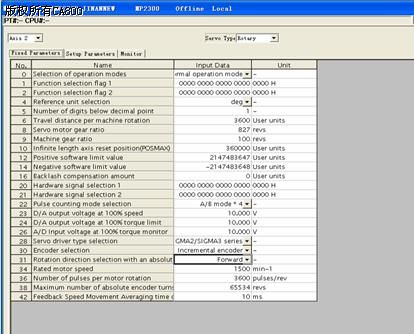 自此圖中可以清晰的反映出當(dāng)前系統(tǒng)所使用的各類硬件以及硬件安插順序。 在IO插槽處可以通過對LIO-04的配置來設(shè)置硬件的IO起始地址,如圖所示: 通過對SVA-01的配置可以對包括伺服電機(jī),編碼器等關(guān)于軸控制的參數(shù)配置。如圖所示: 以上是通過MPE720對包括硬件參數(shù)在內(nèi)的基本配置。 三、MP2000系列及MP2300運(yùn)動控制器的功能和特點(diǎn) 1)、MP2000系列 1>切換迅速的運(yùn)動實(shí)現(xiàn)了機(jī)械動作的高速化 有4個控制模式和在線切換功能的MECHATROLINK-II 可簡化機(jī)械動作設(shè)定的插補(bǔ)功能 2>無偏差的動作擴(kuò)展了應(yīng)用范圍 簡化機(jī)器的電子軸和電子凸輪 實(shí)現(xiàn)高速化的順序控制和運(yùn)動控制的完全同步處理 3>工程工具M(jìn)PE720,無空耗的操作環(huán)境,提高了效率 完備的監(jiān)視功能 簡便設(shè)計(jì)的程序管理、數(shù)據(jù)庫 2)、MP2300 轉(zhuǎn)變?yōu)槿嵝詸C(jī)器控制器的MP2300是集眾多功能于一體的機(jī)器控制器,它配備有CPU模塊、SVB模塊、標(biāo)配I/O模塊功能的基本模塊以及3個擴(kuò)展插槽。CPU最多可進(jìn)行48軸的控制(裝有2個SVB-01模塊時(shí))。擴(kuò)展插槽可以插入選配模塊,通過和選配模塊的組合,可自由構(gòu)筑模擬型和網(wǎng)絡(luò)型的系統(tǒng)。也可以和各種電機(jī)驅(qū)動器、其他公司生產(chǎn)的控制器相連接,以及進(jìn)行I/O分散設(shè)置。 四、結(jié)束語 該項(xiàng)技術(shù)已經(jīng)應(yīng)用成功,并通過相關(guān)行業(yè)認(rèn)證。具有廣泛的應(yīng)用前景,同時(shí)填補(bǔ)了國內(nèi)市場的一片空白,我們本著“一切為客戶”的服務(wù)理念,凡是立足于誠信和責(zé)任,“全心全意為客戶創(chuàng)造價(jià)值”是偉易人為之不懈奮斗的目標(biāo)。 |