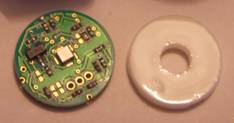 擴(kuò)散硅壓力芯片和玻璃載體之間的靜電封接工藝是MEMS芯片封裝中常用的工藝。為了避免芯片在封接時是產(chǎn)生大的熱應(yīng)力,通常選用熱膨脹系數(shù)與硅相近的材料作芯片的載體。為減小壓力傳感器的體積,實(shí)現(xiàn)系統(tǒng)級封裝,必須將擴(kuò)散硅壓力芯片和相關(guān)電路集成在一塊電路基板上,也就是電路板本身作為擴(kuò)散硅壓力芯片的載體,達(dá)到此目的的首要條件是電路基板材料的熱膨脹系數(shù)與硅片的熱膨脹系數(shù)相近,在普通電路板所使用的基板材料中只有陶瓷基板滿足要求,因此在電路板設(shè)計中選用陶瓷基板,并根據(jù)體積和結(jié)構(gòu)的要求,選用0402封裝的電阻、電容和電感,極大地縮小了電路系統(tǒng)的體積和外形尺寸,實(shí)現(xiàn)敏感元件和電路的一體化,綁定好壓力芯片、焊接了驅(qū)動放大電路的電路板如圖3所示。