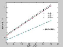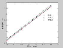 圖5表示樣品1、2、3的輸出特性,通過對三個樣品的比較,我們可以看到三個壓力傳感器輸出信號隨壓力變化的趨勢基本一致。