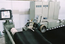 進(jìn)布、呢毯和橡毯電機(jī)采用編碼器反饋方式,根據(jù)預(yù)縮率進(jìn)行控制各自的速度,并且在觸摸屏上設(shè)置手動(dòng)調(diào)節(jié)裝置(步進(jìn)/步退);出布采用平幅折疊落布。