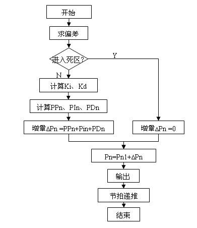 根據(jù)偏差的比例(P)、積分(I)、微分(D)進(jìn)行控制(簡稱PID控制),是控制系統(tǒng)中應(yīng)用最為廣泛的一種控制規(guī)律。本系統(tǒng)中采用的是增量式PID控制器其計(jì)算公式如下: