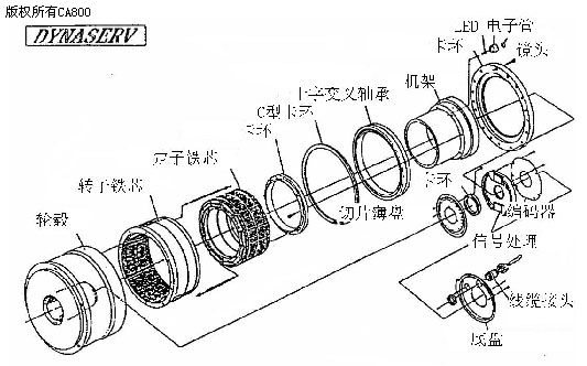 DD馬達結(jié)構(gòu)為外轉(zhuǎn)子形式,與內(nèi)轉(zhuǎn)子結(jié)構(gòu)的普通馬達不同,特別是其采用的向心軸承可承受一定的軸向力。其編碼器為光電型編碼器高解析度,一般為500,000ppr 以上,并帶有原點和限位輸出。由于高水準的制成工藝保證和高精度的測量反饋,此種馬達的定位精度可達秒級。(如 DM1B 系列的絕對精度為 15 arc-sec,重復定位精度為1 arc-sec)。