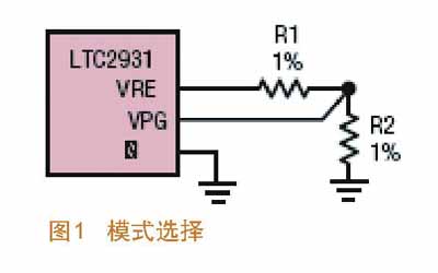 這些監(jiān)控器提供了一種配置輸入電壓門限的上佳方法。圖1顯示出了利用VPG引腳上的單個(gè)阻性分壓器來(lái)把監(jiān)控器設(shè)定為16種門限選項(xiàng)之一的方法。