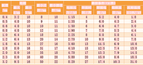 5.要求設(shè)備操作人員熟悉電阻焊的工作原理(如圖5)和焊接技術(shù)參數(shù)的調(diào)整方法。焊接參數(shù)的選定主要由3個變量決定,即焊接電流、焊接時間和電極壓力(如表所示)。點焊時各參數(shù)相互影響,調(diào)整好以上3個變量的技術(shù)參數(shù)就基本保證了焊接質(zhì)量的穩(wěn)定。
