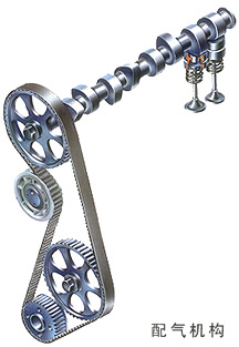 配氣機(jī)構(gòu)的功用是根據(jù)發(fā)動(dòng)機(jī)的工作順序和工作過程,定時(shí)開啟和關(guān)閉進(jìn)氣門和排氣門,使可燃混合氣或空氣進(jìn)入氣缸,并使廢氣從氣缸內(nèi)排出,實(shí)現(xiàn)換氣過程。(如下左圖)