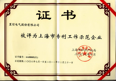 至2008年11月,置信電氣已經(jīng)獲得授權(quán)專(zhuān)利63項(xiàng)。近日,經(jīng)批準(zhǔn),上海置信電氣股份有限公司被上海市知識(shí)產(chǎn)權(quán)局命名為“上海市專(zhuān)利工作示范企業(yè)”。