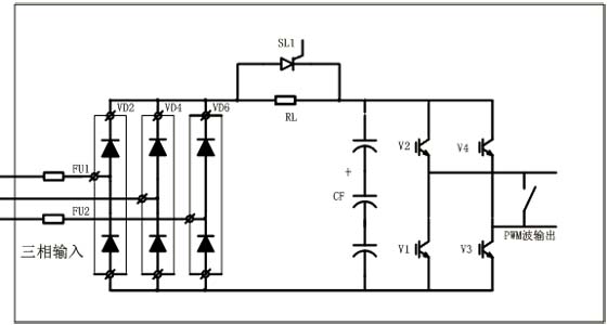 功率單元由移相變壓器的一組副邊供電,通過三相全橋整流器將交流輸入整流為直流,并將能量儲存在電容組中。電容組根據(jù)單元電壓選擇并聯(lián)或串連,如母線電壓為815V,則將三組電容串連起來以滿足耐壓要求,每組電容根據(jù)單元容量的大小選擇并聯(lián)個(gè)數(shù)??刂撇糠滞ㄟ^電源板從直流母線上取電,接收主控系統(tǒng)發(fā)送的PWM信號并通過控制IGBT的工作狀態(tài),輸出PWM電壓波形。