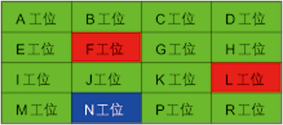 MES注重提升每道工序的質(zhì)量和效率,為此而在工位和生產(chǎn)線上設(shè)置的信息提示板可以顯示來自于生產(chǎn)管理系統(tǒng)的加工(安裝)信息及來自于生產(chǎn)線各工位的求援信息等。圖7為簡易的工位安裝提示板,提示當(dāng)前車和后續(xù)車需安裝的配件型號。圖8為簡易工位狀態(tài)提示板,顯示各生產(chǎn)工位的故障(紅色)或求援(藍(lán)色)信息。