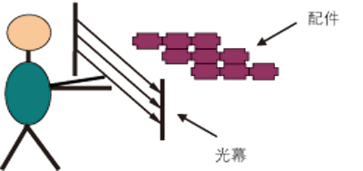 不同的車間或不同的工段所采用的防錯方法是有區(qū)別的。以總裝車間的部分內(nèi)飾件裝配工段為例,為了保證裝配工件的準(zhǔn)確性,首先須將配件按型號類別分區(qū)放置,再在取配件的通道上安裝光幕或光電開關(guān)等進(jìn)行動作檢測。如圖10所示,在人與配件中間設(shè)置了光幕,當(dāng)穿過光幕取配件時,光幕將輸出信號至PLC,PLC再通過軟件確認(rèn)取出的配件型號與當(dāng)前車型是否匹配,如不匹配,將出現(xiàn)停止裝配的聲光提示。
