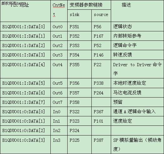 表2 1#傾動(dòng)變頻器參數(shù)鏈接及與PLC的對(duì)應(yīng)關(guān)系