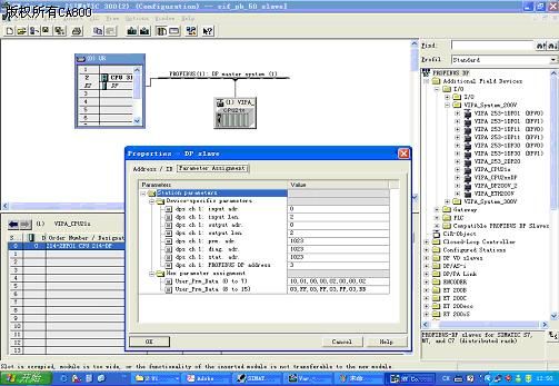 (7)、有兩種方式插入從站設(shè)備VIPA CPU2xxDP,一種是手動插入,另一種是自動插入。這里使用手動插入,選擇“Insert → Slave”,打開如下圖所示窗口,選擇“VIPA CPU2xxDP”,在這里要配置從站的地址要和VIPA CPU2xxDP在STEP7中配置的地址一致。