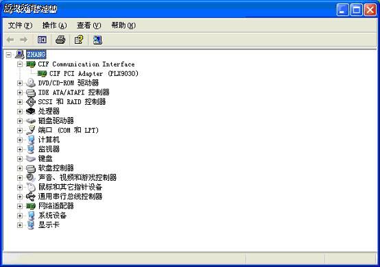 首先關(guān)閉計算機,斷開電源,把機箱蓋拆開,然后把CIF 50-PB卡插上,裝好計算機,重新啟動計算機。重啟后系統(tǒng)會自動發(fā)現(xiàn)新硬件,此時需把CIF 50-PB產(chǎn)品附帶的光盤裝光驅(qū)進行驅(qū)動的安裝。驅(qū)動安裝成功后,在“設(shè)備管理器”中會發(fā)現(xiàn)如下圖所示。