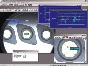 這個工具可以檢測到在掃描方向上由光照強(qiáng)度產(chǎn)生的、經(jīng)標(biāo)定后的變化度,可使大多數(shù)的計算和測量任務(wù)變得非常簡單。數(shù)據(jù)采集軟件可以采集到數(shù)十個甚至上百個點的數(shù)據(jù),然后將這些點連接成直線、圓圈或其他幾何圖形,這一功用在復(fù)雜的汽車生產(chǎn)中極大地提高了測量的準(zhǔn)確性和可重復(fù)性。此外,具有較強(qiáng)通用性的工具還可以解決正確的定位或角度開口方向、直徑、切痕、鼓包、彎曲或非對準(zhǔn)物件等。