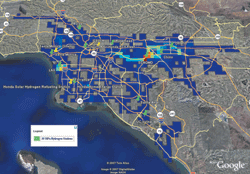Engineers can use these results to determine how fuel depletion rates are affected by the driving environment. By overlaying plots of hydrogen fueling stations and standard gas stations on the map, they can then evaluate the current fueling infrastructure.