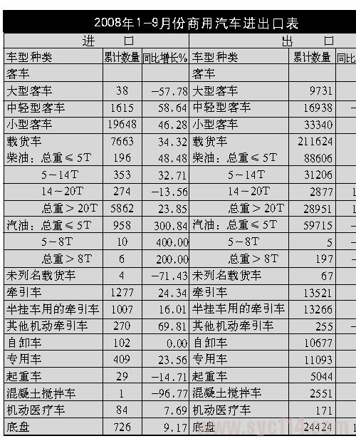 2008年前三季度商用車及零部件進(jìn)出口綜述