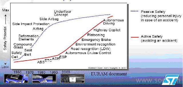 圖一 汽車安全系統(tǒng)從被動向主動方式發(fā)展的趨勢圖