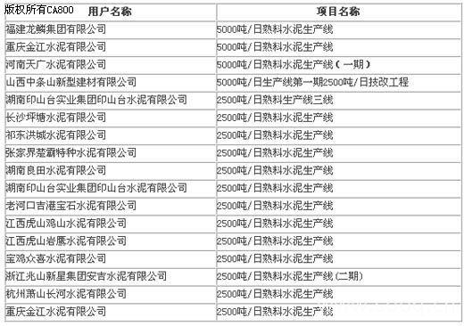 截至目前,中控在水泥行業(yè)已經(jīng)取得了大量應(yīng)用業(yè)績,用戶涵蓋了國內(nèi)多家大型水泥生產(chǎn)企業(yè)(如安徽海螺集團(tuán)),以下是我們在不同規(guī)模水泥生產(chǎn)領(lǐng)域的部分典型項目: