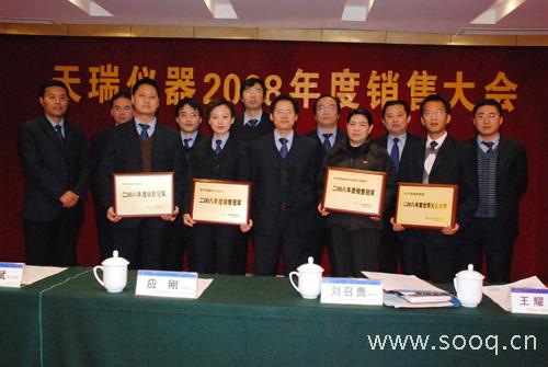 天瑞儀器公司領(lǐng)導(dǎo)與2008年度銷(xiāo)售冠軍、優(yōu)秀大區(qū)經(jīng)理合影留念