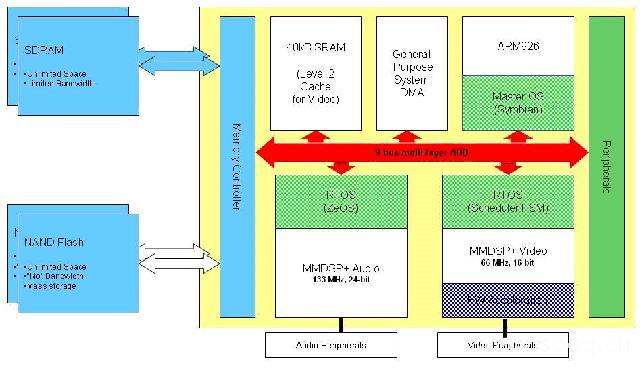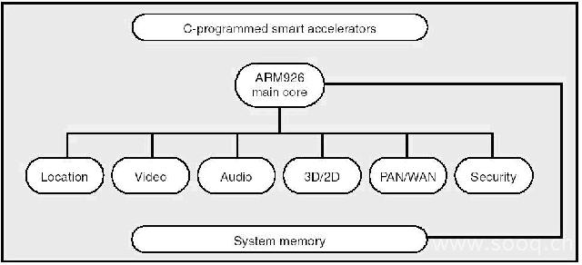 圖三 具廣泛功能延伸性的多核心應用處理器架構(以Nomadik STn8810為例)