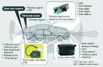 在實(shí)際使用的過程中,雷達(dá)系統(tǒng)與偏航速率傳感器采用一體化設(shè)計(jì),配備于車前隔柵后方。成功的案例包括:德爾福最大檢測(cè)角度為15度的新型巡航控制系統(tǒng)毫米波雷達(dá);雷克薩斯LS460車型使用毫米波雷達(dá)和攝像機(jī)實(shí)現(xiàn)車輛前方障礙物識(shí)別功能和后方車輛識(shí)別功能;日野為Profia車型增加的標(biāo)配追尾減輕制動(dòng)系統(tǒng),它利用毫米波雷達(dá)判斷出追尾危險(xiǎn)后,發(fā)出警報(bào)音并起動(dòng)制動(dòng)器,通過追尾減輕制動(dòng)系統(tǒng)中的“預(yù)防撞安全系統(tǒng)”來防止碰撞。