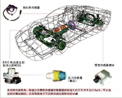 電子穩(wěn)定性控制(ESC)系統(tǒng)的出現(xiàn),對于減少交通事故傷亡具有突破性的意義。過去,該系統(tǒng)以各自獨(dú)立的慣量傳感模塊為電動(dòng)液壓制動(dòng)控制模塊提供輸入信號。不斷的測試表明,把慣量傳感器一體化到安全氣囊控制模塊中,是一個(gè)在保證ESC系統(tǒng)性能的同時(shí),減少車載模塊總數(shù)的可行方法。