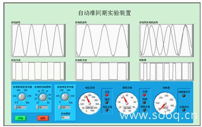本實(shí)驗裝置能很好的模擬發(fā)電機(jī)自動并列操作,在界面上能實(shí)時顯示發(fā)電機(jī)、系統(tǒng)電壓、頻率和相位的變化,以及在何種條件下能成功實(shí)現(xiàn)并列。用虛擬儀器實(shí)現(xiàn)自動準(zhǔn)同期實(shí)驗裝置,將很多需要硬件實(shí)現(xiàn)的用軟件編程來完成,不僅使實(shí)驗裝置顯示直觀,并網(wǎng)精度高、操作靈活,而且修改或增加實(shí)驗功能也很方便,簡單。